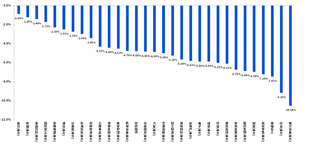 图:上周A股申万一级行业表现