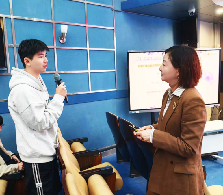 针对有效沟通、生活场景与认知引力三大核心模块,辛欣提出“共情倾听+逻辑阐述+寻求共识”的实用沟通公式,结合客户质疑、投诉处理、预期管理等真实业务场景,通过互动演绎的方式,帮助学子掌握以深度共情化解矛盾、以结构化表达赢得信任的技巧。同时,课程将能力培养延伸至日常场景,分享生日祝福等细节沟通中的人文关怀传递方法,引导学子在校园协作与未来职场中注入情感温度;针对不同客户需求,解析差异化资讯推送与资产配置策略,明确财富管理终极目标——不仅实现客户资产增值,更以专业洞察与人性理解,成为客户信赖的“认知引路人”。
