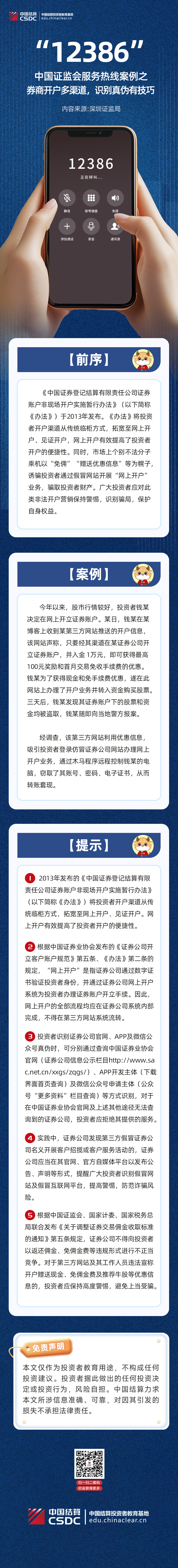 中国结算投教 | “12386”中国证监会服务热线案例之券商开户多渠道,识别真伪有技巧
