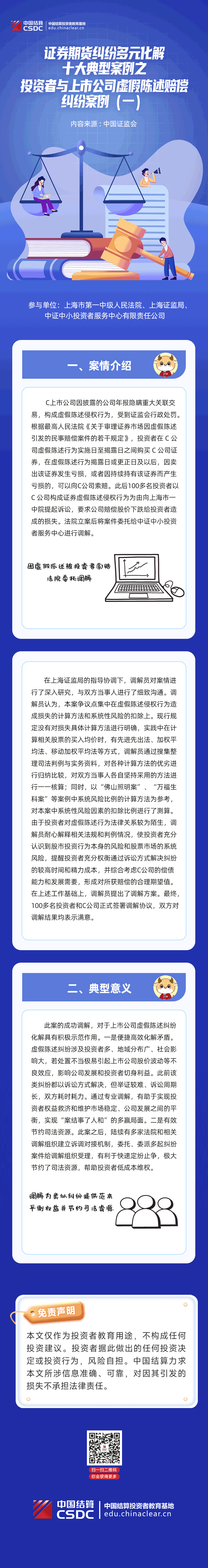 中国结算投教 | 证券期货纠纷多元化解十大典型案例之投资者与上市公司虚假陈述赔偿纠纷案例(一)