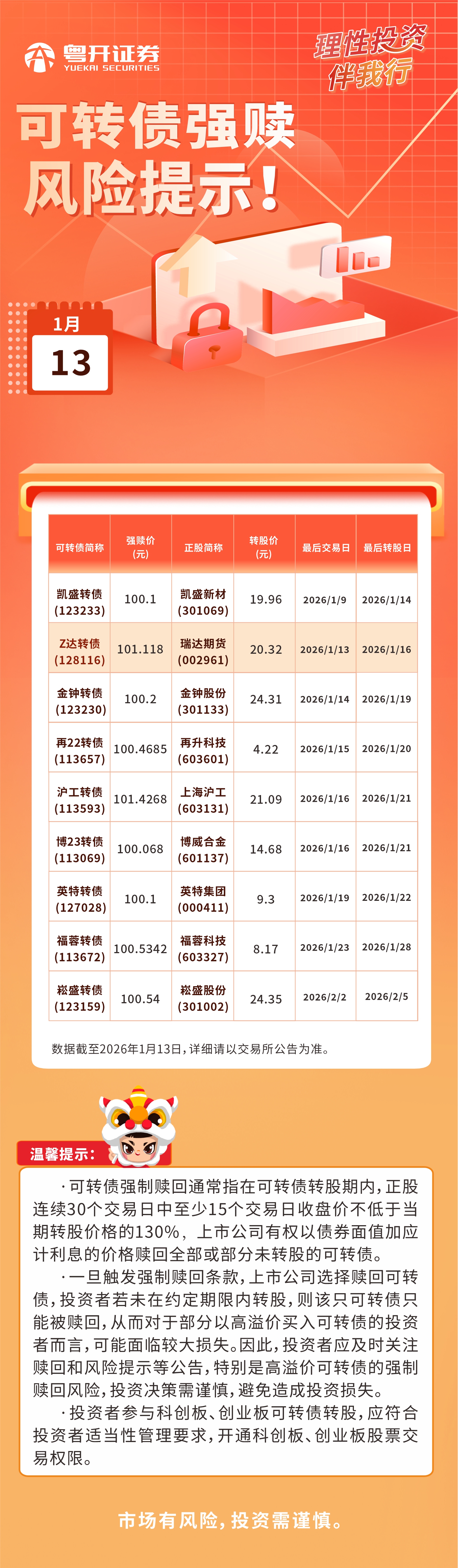 2026.1.13可转债强赎风险提示