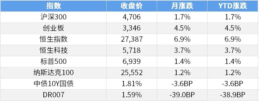 六、股票投资策略 1 股票市场月度回顾 A股市场整体表现:本月A股趋势走强。上证综指3.76%,沪深300指数为1.65%,深证成指为5.03%,创业板指为4.47%,中证1000为8.68%,国证2000为9.13%。 行业表现:行业普遍走强,周期和科技双双走强,有色金属22.59%、传媒17.94%、石油石化16.31%、建筑材料13.31%、基础化工12.72%。稳定板块相对走弱,银行-6.65%、家用电器-0.97%、非银金融-0.53%、交通运输-0.38%、农林牧渔-0.15%。 港股市场整体表现:港股震荡偏强,恒生指数为6.85%、恒生科技为3.67%。 行业表现:行业亦震荡走强,原材料18.98%、地产建筑业14.75%、能源业13.53%等周期相对较强;科技消费板块表现较弱,电讯业-1.26%、资讯科技业0.69%、必需性消费3.39%。 2 投研随笔 近期 A 股从前期强势震荡逐步转向承压调整,短期市场波动加剧、调整压力显现。(1)1 月 30 日,特朗普宣布提名前美联储理事凯文・沃什为下任美联储主席,该提名引发市场对美联储政策导向的重新定价。沃什被市场视为偏鹰派人选,且被认为能 “重新锚定美联储公信力”,直接打破此前市场盛行的 “货币贬值 — 实物资产永涨” 叙事,引发贵金属等资产多头集中平仓,同时强化市场对美联储降息节奏放缓的预期,间接传导至 A 股,压制风险偏好。若提名获参议院批准,后续美联储政策收紧预期可能进一步升温,加剧全球资金流动波动。(2)受美联储鹰派信号、沃什提名提振,1 月 29 日美元指数上演 “V 型反转”,虽后续涨幅收窄,但短期反弹态势明确。美元反转直接提升美元资产吸引力,可能引发北向资金阶段性流出,对 A 股流动性形成扰动;尤其前期外资重仓的科技、消费龙头,可能面临短期资金承压。同时,美元走强导致以美元计价的大宗商品吸引力下降,进一步放大商品市场波动,传导至 A 股相关板块。(3)春节临近,A 股进入季节性缩量周期,叠加 1 月 A 股总成交达 60 万亿元、创历史新高,前期积累的大量获利盘兑现意愿升温,资金 “持币过节” 需求凸显。缩量态势初现,交投活跃度下降将进一步放大市场波动,且板块轮动速度加快,追高风险上升,短期难有明确上行动能。短期风险共振引发的调整,并非 A 股长期趋势的逆转,反而具备多重积极意义,为长期健康上行蓄力,核心逻辑未发生改变。国内 “十五五” 规划聚焦科技自立自强,新质生产力相关赛道(AI、半导体、高端制造)的产业逻辑与政策红利持续兑现;居民储蓄向资本市场转移的长期趋势未变,中长期资金入市仍在提速;全球层面,美联储降息周期未完全结束,美元长期偏弱格局未改,外资长期配置 A 股的逻辑依然成立。 近期风险对AH均形成冲击,但因市场定位、流动性来源不同,传导路径与承压程度存在差异,其中港股受外部冲击更直接,波动幅度更大,两者表现呈现 “同跌不同幅、分化有差异” 的特征。沃什提名引发全球货币政策预期重定价,是本轮调整的核心导火索。港股以港币挂钩美元计价,美联储政策直接影响香港金管局流动性操作,可能被动收紧本地流动性,同时恒生科技指数成分股多为海外融资企业,美元融资成本上升直接压制盈利预期,灵活型外资占比高的特点导致资金撤离速度或远超 A 股。无论 A 股还是港股,短期调整均非趋势逆转,反而具备多重积极意义,尤其港股的彻底调整,更能为后续上行扫清障碍,与 A 股形成互补,共同夯实长期向好基础。短期看,防御优先,控制仓位。长期(春节后及全年):逢低布局,协同配置。