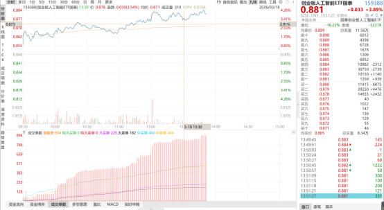 今日市场震荡调整背景下,创业板人工智能ETF国泰(159388)逆势走强,盘中涨幅超3.8%,呈现出显著的板块独立行情与资金青睐度。核心驱动来自事件催化、资金回流与板块估值修复三重共振:英伟达GTC 2026大会释放算力硬件、光模块、PCB、CPO等产业链强需求信号,直接提振AI硬件与算力环节景气预期;叠加前期板块回调后估值处于相对合理区间,资金借势布局高弹性标的,推动ETF快速上行;同时,场内资金持续净流入,近十日获明显净申购,交投活跃度提升,进一步放大上涨动能。