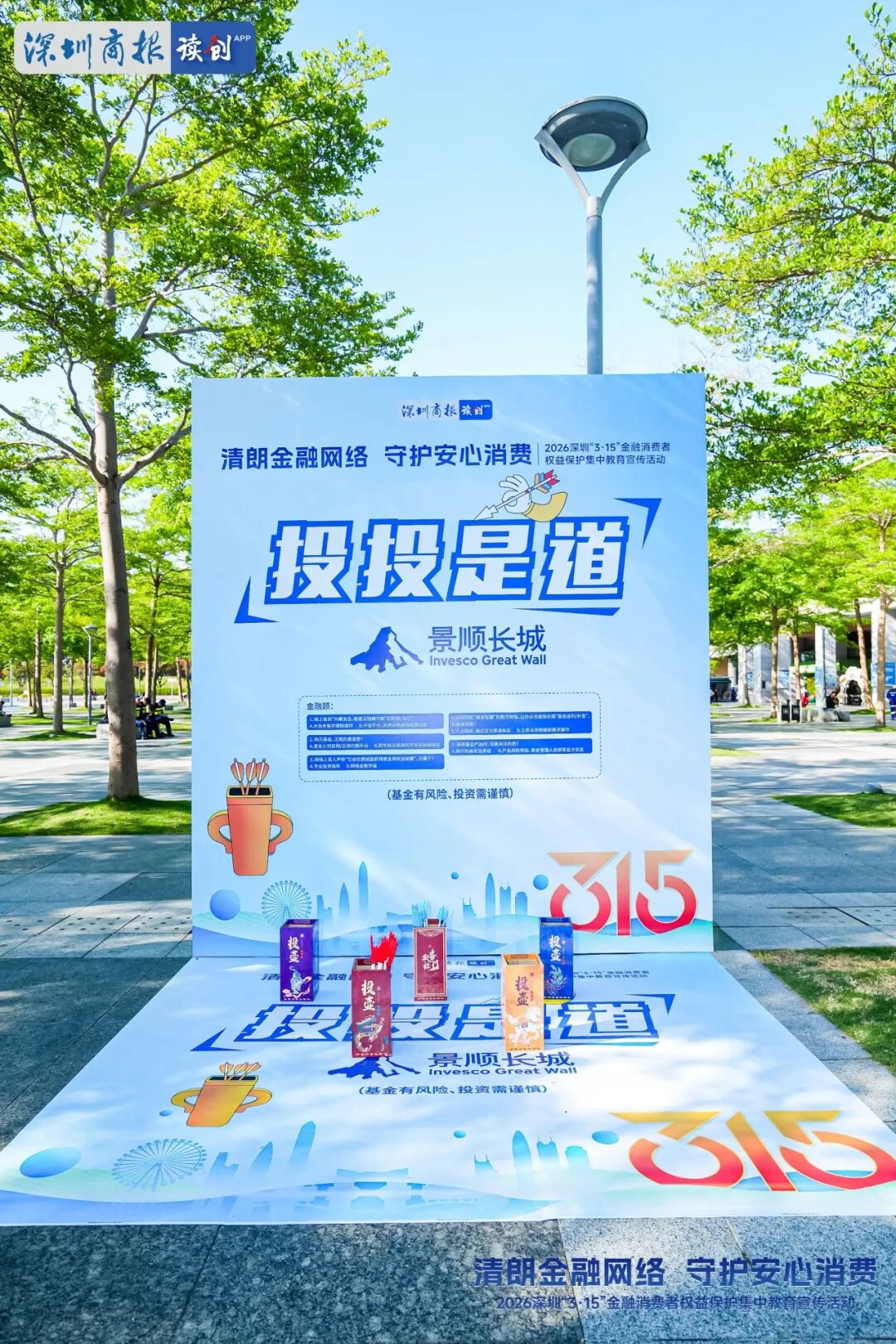 3月14日,由深圳商报主办、深圳市基金同业公会、深圳市银行业协会、深圳市证券业协会联合指导的2026年“深圳3·15金融消费者权益保护集中教育宣传”活动在深圳中心书城开展,本次活动以“清朗金融网络 守护安心消费”为主题,汇聚34家金融机构打造金融消保嘉年华。景顺长城基金受邀参与,以趣味互动与专业科普相结合的方式,向市民普及金融消保、养老金投资等知识,传递理性投资理念。