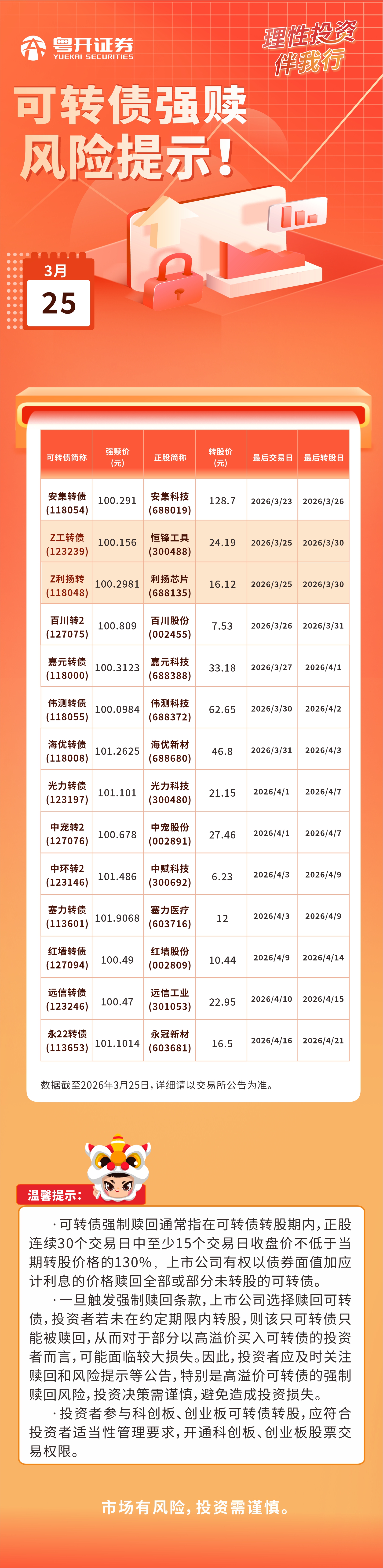 2026.3.25可转债强赎风险提示