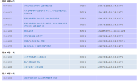 1、半导体设备方面,Semicon China 2026正在上海新国际博览中心举办,涵盖半导体制造、半导体设备和材料等等多个环节重点内容分享,产业链重点厂商参会,昭示国内半导体行业进展。