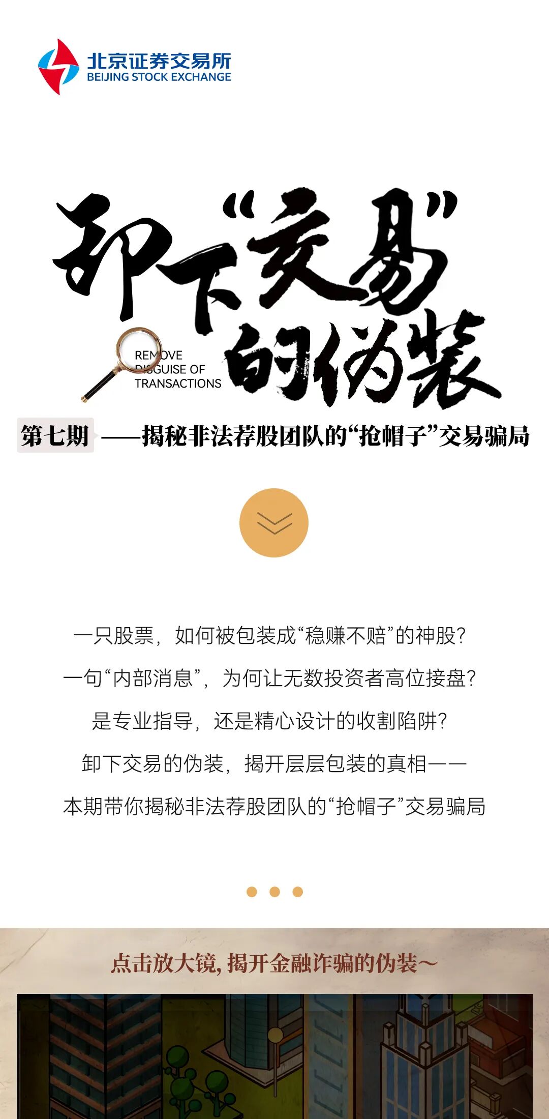 北交所新三板投教 | 卸下“交易”的伪装第七期:揭秘非法荐股团队的“抢帽子”交易骗局