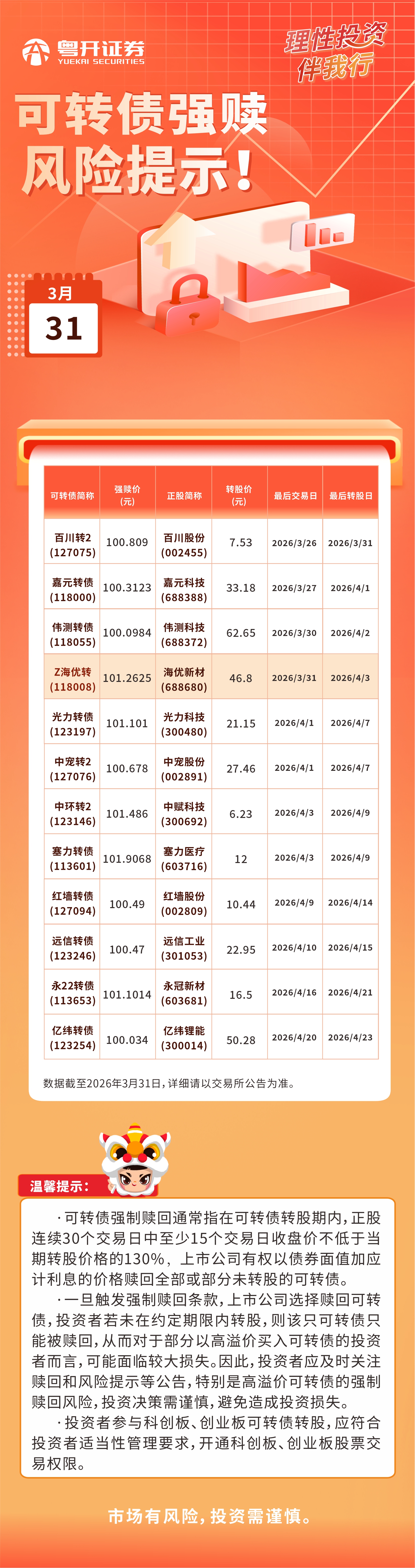 2026.3.31可转债强赎风险提示