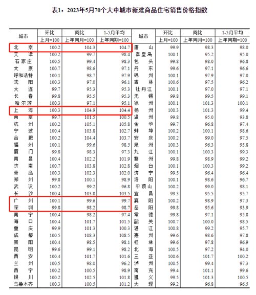 环比来看,5月份,一线城市新建商品住宅销售价格环比上涨0.1%,涨幅比上月回落0.3个百分点,其中北京、上海和广州环比分别上涨0.2%、0.3%和0.1%,深圳下降0.2%。