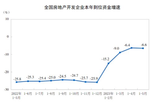 1—5月份,房地产开发企业房屋施工面积779506万平方米,同比下降6.2%。其中,住宅施工面积548475万平方米,下降6.5%。房屋新开工面积39723万平方米,下降22.6%。其中,住宅新开工面积29010万平方米,下降22.7%。房屋竣工面积27826万平方米,增长19.6%。其中,住宅竣工面积20194万平方米,增长19.0%。