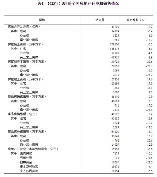 6月15日,国家统计局还发布了2023年1—5月份全国房地产市场基本情况。