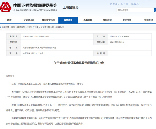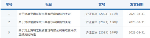 个人层面,徐世骏、卓灵晨分别被采取出具警示函措施。
