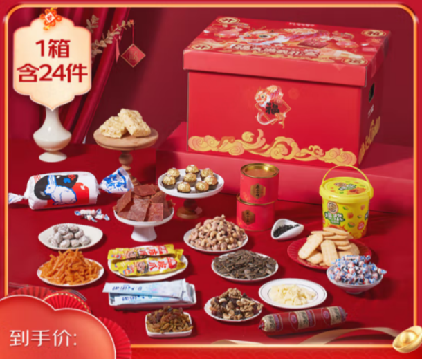 就说刘强东选择送给老家光明村父老乡亲们的两样年货,一个是波司登的羽绒服,另一个是京东超市的零食礼盒。前者不必多说,“专注于羽绒服研发47年畅销全球72国”早已传遍大街小巷,妥妥的国货之光。而后者是京东超市自有品牌“京觅”推出的一款休闲零食礼盒,一箱有22件爆款零食,里面包含了良品铺子混合坚果、百草味紫皮腰果、八马正山小种茶叶、蒙牛芝士乳酪、洽洽瓜子、徐福记软糖、大白兔奶糖、旺旺仙贝、西域美农葡萄干等众多经典国货零食和地方农特产品,整整11斤重.