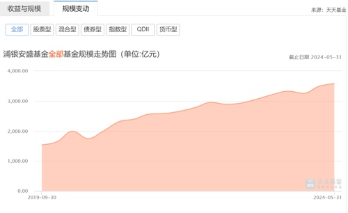 近几年,浦银安盛基金规模稳步攀升。Wind数据显示,截至2024年一季度末,浦银安盛基金整体资产管理规模已超5100亿元,目前共管理公募基金107只,公募基金管理规模3570.24亿元,较去年末增长6.71%。其中,非货管理规模达1596.22亿元,较去年末增长2.33%。