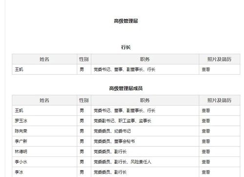 从广发银行当前高管队伍来看,白涛任董事长,王凯任党委书记、行长,林德明、李冰为副行长,李小水任副行长、风险责任人,李广新任董事会秘书。