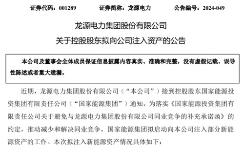 龙源电力发布公告称,国家能源集团拟注入的新能源资产,系其下属部分省公司体内符合注入条件的新能源公司股权,预计新能源装机规模约400万千瓦,初步计划分批注入。