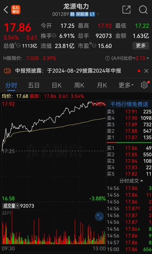 在资本市场上,龙源电力2009年、2022年相继在港股、A股上市,截至7月1日,其A股收盘价为17.86元/股,总市值为1113亿元。
