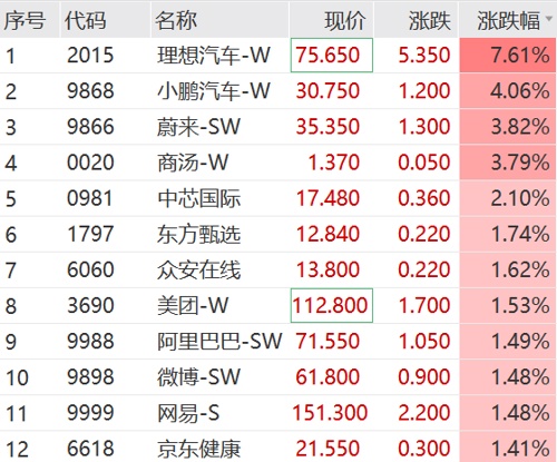 港股市场今日低开后直线拉涨,截至发稿,三大指数涨幅均超1%。“造车新势力”表现火热,理想汽车、小鹏汽车、蔚来领涨恒生科技指数成份股。