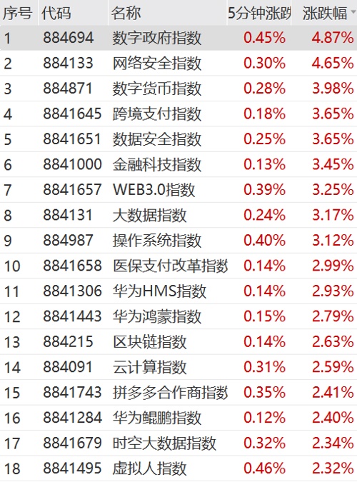 7月2日上午,计算机板块冲在申万一级行业首位。细分赛道中,数字政府、网络安全指数涨超4%,数字货币、金融科技、跨境支付、数据安全等概念接连大涨。