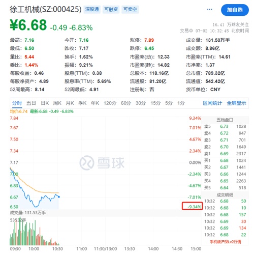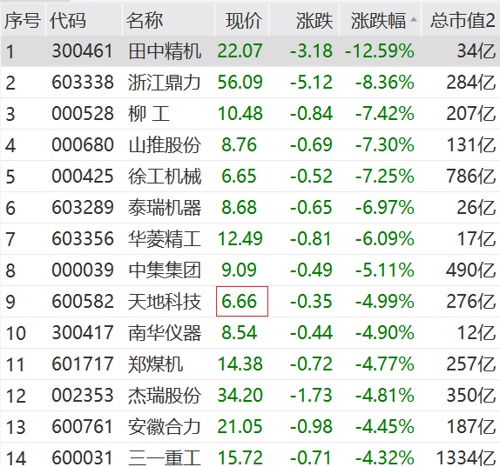 另外,上午机械设备板块整体走低,多只大市值个股出现明显跌幅。徐工机械盘中跌超9%,三一重工跌超4%。