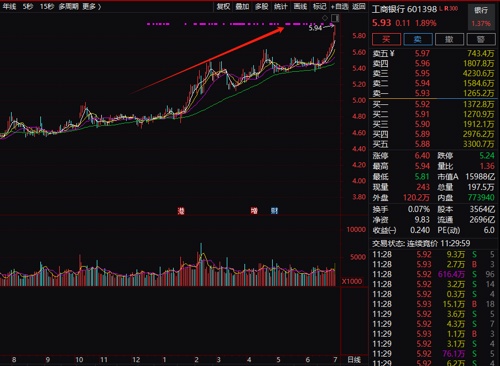 超2万亿元市值的工商银行,股价创出6年多来新高。