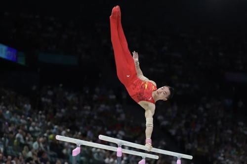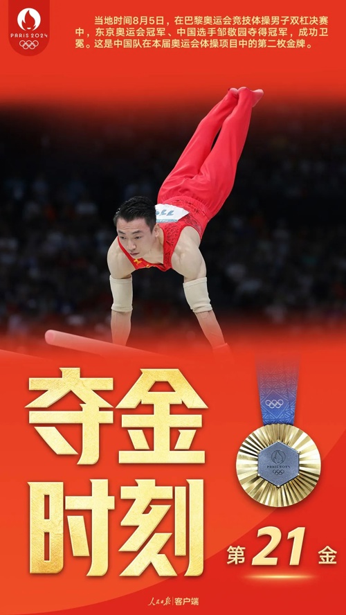 巴黎当地时间8月5日中午,巴黎奥运会竞技体操项目在贝尔希体育馆展开最后一个比赛日的争夺。在男子双杠决赛中,东京奥运会冠军、中国选手邹敬园夺得冠军,成功卫冕。