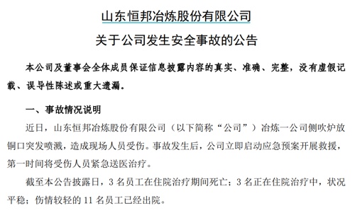 8月12日晚间,恒邦股份发布公告称,近日,公司炼一公司侧吹炉放铜口突发喷溅,造成现场人员受伤。