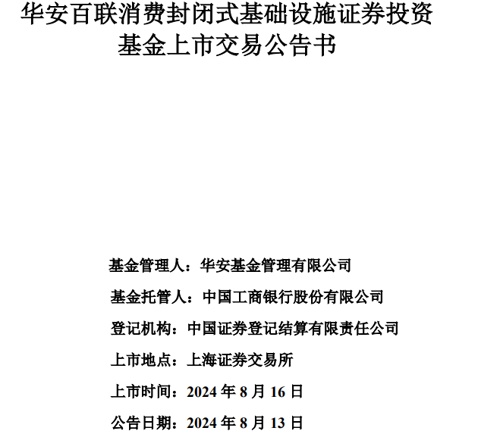据华安基金最新公告,华安百联消费REIT上市定档,8月16日将登陆上交所。