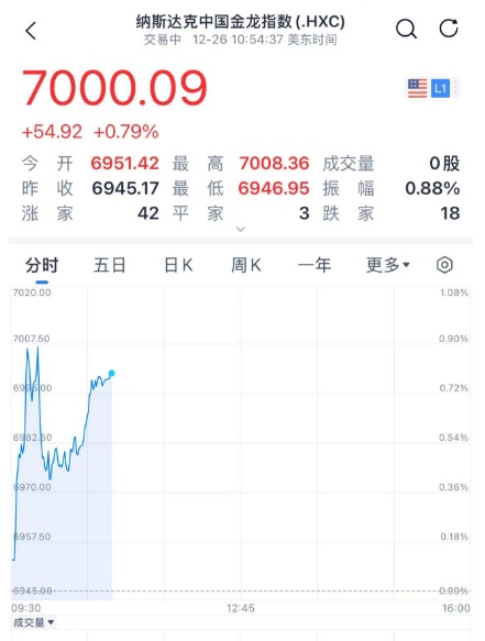 12月26日晚间,圣诞假期归来,美股三大指数小幅下跌。道琼斯指数五个交易日以来首次下跌,标普500指数下跌0.14%,纳斯达克综合下跌约0.17%。