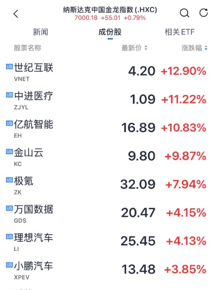 中国资产方面,中概股指数涨约0.8%,理想汽车涨超4%,小鹏汽车涨超3%,富时中国A50期货指数由跌转涨。