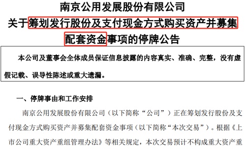 【导读】南京公用拟收购宇谷科技68%股份,后者今年6月刚主动撤回IPO12月26日晚,南京公用公告,正在筹划发行股份及支付现金方式购买杭州宇谷科技股份有限公司(以下简称宇谷科技)68%股份并募集配套资金事项。鉴于本次交易尚处于筹划阶段,为避免对公司证券交易造成重大影响,南京公用自2024年12月27日开市起停牌,预计连续停牌时间不超过10个交易日。实际上,南京公用在12月26日早间开盘即快速冲上涨停。记者注意到,此次标的公司宇谷科技实是一家IPO失利企业,主营电动两轮车充换电设备和服务,去年6月其IPO申请获受理,今年6月选择主动撤回,保荐人是中信证券。公告显示,南京公用拟通过发行股份及支付现金方式购买宇谷科技约68%股权并募集配套资金。公司与交易对手方刘爱明、杭州宇谷企业管理合伙企业(有限合伙)、胡雄毅、李朝、杭州宇资投资管理合伙企业(有限合伙)已签署了《南京公用与宇谷科技股东股权收购框架协议》,初步达成购买资产意向。南京公用表示,本次交易预计不会导致公司实际控制人变更,最终交易对方、标的资产范围等具体方案,应以重组预案或重组报告书披露的信息为准。根据《上市公司重大资产重组管理办法》等相关规定,本次交易预计不构成重大资产重组,不构成重组上市。中国基金报记者注意到,宇谷科技其实是一家IPO失利企业,今年6月刚刚主动撤回创业板IPO申请。没想到不到半年,宇谷科技就开始寻求以并购方式曲线上市。宇谷科技在招股书中自述是一家“基于AI新能源的电动两轮车充换电设备制造及AI出行整体解决方案服务商”,是国家专精特新“小巨人”企业、世界物联网500强企业,首创世界端侧锂电池检测大模型。公司的主要产品及服务为换电服务和充换电设备。招股书称,截至2023年6月末,宇谷科技换电业务已经布局北京、上海、广州、深圳、杭州、成都等66个城市,上线运营换电柜2.37万台,电池51.75万个,在网用户数39.11万个。2020年至2023年上半年三年又一期,宇谷科技营业收入分别为9383.57万元、2.29亿元、5.59亿元、4.07亿元,净利润分别为1525.69万元、3304.73万元、8134.26万元、5944.04万元。从财务数据看,宇谷科技似乎是一家快速成长型企业。南京公用是南京市国资旗下一家综合类企业,经营房地产开发、管道燃气、出租汽车、电力能源、客运大巴、国内国际旅游、汽车销售、汽车修理、汽车检测、小额贷款、广告传媒等多种产业,是江苏省出租汽车龙头企业,拥有南京市最大的管道燃气经营单位,打造了南京知名的“中北”地产品牌。南京公用于1996年8月6日在深交所挂牌上市,2014年通过重大资产重组置入了南京港华等燃气产业,南京市城建集团持股比例由37.23%增加至54.23%,公司总股本从3.52亿股增加至5.73亿股。并入南京港华后,公司证券简称从“南京中北”更名为“南京公用”。近两年南京公用业绩承压,2023年其净利润罕见报亏近亿元。2024年前三季度,南京公用营收约36.38亿元,同比增长9.13%,但归属于上市公司股东的净利润亏损约1442万元;基本每股收益亏损0.025元。截至今年三季度末,公司有股东4.18万户。截至12月26日收盘,在股价突然涨停后,南京公用最新市值增至37.33亿元。