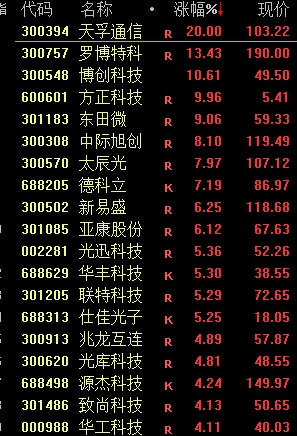 CPO概念股午后走强,天孚通信、方正科技、共进股份涨停,太辰光涨近8%。