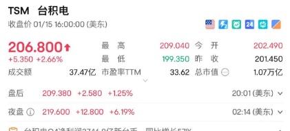 财报数据出来之后,台积电美股夜盘上涨6%。