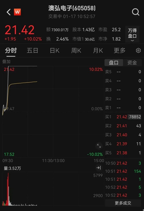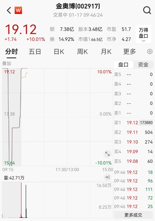 【导读】机器人、PCB概念概念火热,奕东电子直线20CM涨停大家好!又到周五,来一起关注上午的市场行情和最新资讯~1月17日,央行继续释放流动性:当日以固定利率、数量招标方式开展了1050亿元7天期逆回购操作,操作利率为1.50%。Wind数据显示,当日45亿元逆回购到期。1月17日,A股市场早间开盘不振,持续窄幅震荡。但上午10点后,大盘忽然直线拉升。盘面上,上午食品饮料、非银金融、基础化工、计算机等集体拉升,林木、酒业、航空、发电设备等板块表现较好;商贸零售、纺织服饰等板块不振。港股早间小幅低开,上午同步拉升。截至发稿,恒生指数、恒生科技指数均已翻红;中芯国际大涨5%,领涨恒生科技指数成份股。1月17日,机械设备板块走强,机器人概念盘初火热。金奥博开盘秒板,实现7连板;远大智能、中大力德、汇洲智能等纷纷涨停。近期,多家企业发布人形机器人最新进展。1月16日晚间,宇树机器人发布人形机器人Unitree G1的行走、奔跑视频。据介绍,该机器人进行了仿生、灵动升级,以实现柔顺行走和仿人奔跑。同期,软通天擎机器人公司在无锡发布了旗下首款交互与教育双足机器人天鹤C1,定位科研教育和交互服务场景。1月14日,在北京市第十六届人民代表大会第三次会议上,北京市市长殷勇作政府工作报告。谈及2025年重点任务,报告提出,强化应用场景牵引,加快商业星座组网等试点示范,举办世界人形机器人运动会。东吴证券研报认为,现阶段人形机器人行业内加强合作已成主流趋势,机器人本体企业拥有更好的技术研究平台与现实落地场景。人形机器人行业产业合作大趋势已成主流,企业间合作加强有望共同助推人形机器人产业化进程加速。1月17日,藏格矿业正式复牌,在集合竞价阶段即大举涨停,股价报32.45元/股。截至发稿,藏格矿业仍保持一字涨停状态。昨日晚间,藏格矿业发布关于筹划公司控制权变更事项的复牌公告。相关交易完成后,藏格矿业控股股东由藏格创投变更为紫金国际,实际控制人由肖永明变更为上杭县财政局。紫金国际是紫金矿业集团股份有限公司100%持股的子公司。藏格矿业表示,该次股份转让有助于公司提升行业竞争力,加快矿产资源开发与利用,增强协同效应,实现技术优势互补。紫金矿业的业务范围较广,市场渠道较多,具有较大的市场影响力。公司能够借助紫金矿业的市场渠道,有效应对行业波动,提升公司的抗风险能力。PCB概念1月17日盘中再度走强,截至发稿,奕东电子、澳弘电子、金安国纪等涨停。其中,奕东电子几分钟内直线冲上20CM涨停。