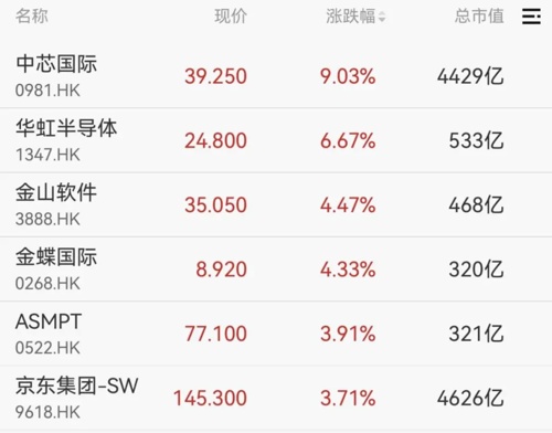 港股方面:恒指、恒生科技指数双双转涨,中芯国际大涨超9%,华虹半导体涨超6%。
