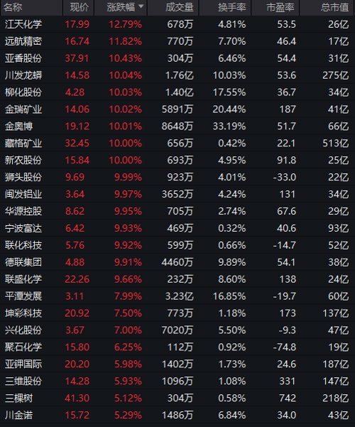化工板块多股涨停