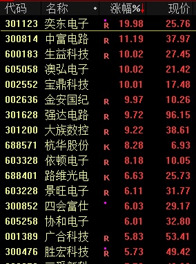 PCB概念震荡拉升,奕东电子“20cm”涨停,宝鼎科技、金安国纪、澳弘电子、生益科技涨停。