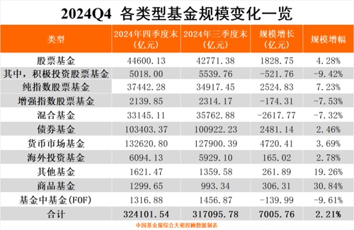 【导读】公募基金2024年四季度末总规模超过32万亿元,固收基金和纯指数股票基金贡献大