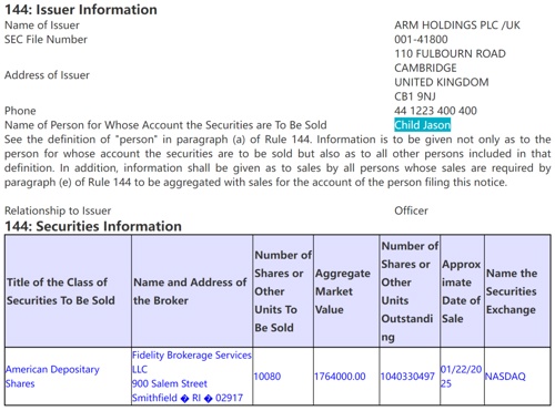 而在过去的3个月,Jason Child已经先后两次,合共出售了市值约574.56万美元的ARM股份。