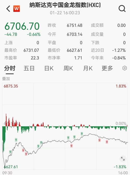 中概股多数下跌,纳斯达克中国金龙指数跌0.66%,万得中概科技龙头指数跌0.09%。
