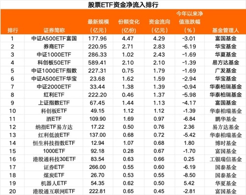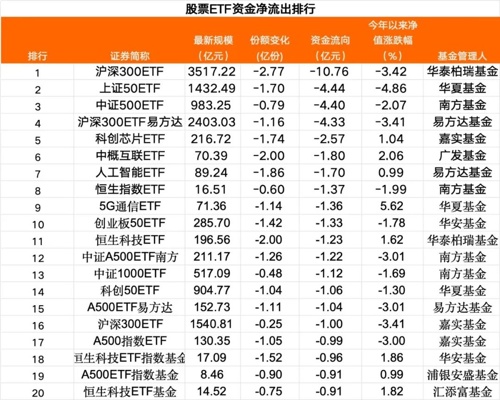 部分宽基ETF和行业ETF净流出居前