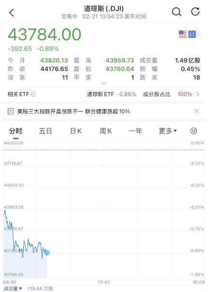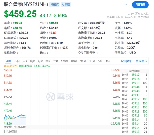 联合健康股价大跌约9%,成为道指下行的重要拖累因素。此前,有消息称美国司法部正在调查该保险公司的医疗保险计费行为。