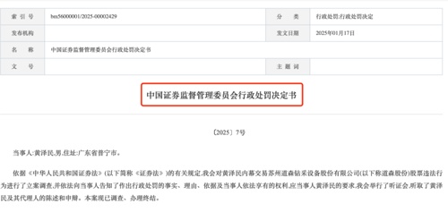 【导读】内幕交易道森股份,自然人黄泽民被罚没超2700万元