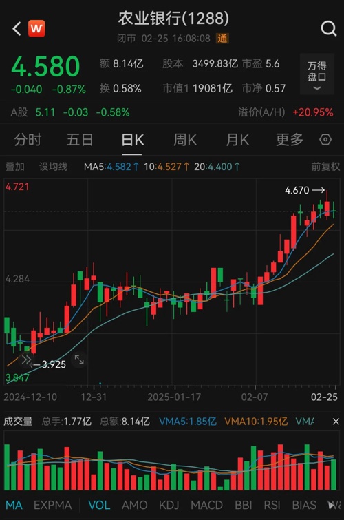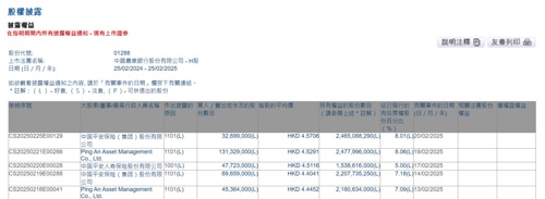 港交所股权披露数据显示,平安人寿在2月17日以每股4.5116港元的平均价,买入4772.3万股农业银行H股,买入金额合计约为2.15亿港元,交易后持股比例为5%,触发平安人寿举牌。平安人寿表示,本次举牌农业银行H股股票的资金来源是平安人寿的保险责任准备金。参与此次举牌的关联方为平安资管,是公司的受托方,也是由同一控股股东中国平安控股的公司。平安资管通过竞价交易方式买入农业银行H股股票。截至2025年2月17日,平安人寿持有农业银行H股股票的账面余额为64.63亿元,占上季度末总资产的比例为0.14%。截至2024年12月31日,平安人寿权益类资产账面余额为9611亿元,占2024年三季度末总资产的比例为20.96%。截至2024年9月30日,平安人寿总资产为48258.96亿元,净资产为3176.13亿元,综合偿付能力充足率为200.45%。在举牌农业银行H股不久前,平安人寿已举牌三家银行股。去年12月20日,平安人寿买入工商银行H股4500万股,每股均价为4.8718港元,买入金额约2.19亿港元,交易后达到工行H股股本的15%,根据中国香港市场规则,触发公司举牌。这是平安人寿自2019年举牌中国金茂后,时隔五年首次公告举牌。今年1月8日,平安人寿买入邮储银行H股716.8万股,每股均价为4.5639港元,买入金额约3271.4万港元。交易后持股达到邮储银行H股股本的5%,根据香港市场规则,触发平安人寿举牌。1月15日,港交所披露易显示,中国平安旗下子公司平安人寿于1月10日增持招商银行H股,增持后合计持股比例达到5%。根据香港市场规则,触发举牌。除了平安人寿多次举牌银行股外,近期,中国平安也出手增持银行股。具体来看,2月20日,中国平安买入农业银行H股,每股均价为4.5706港元,买入股数为3269.9万股,耗资1.49亿港元,持股比例增至8.01%。截至2月25日收盘,农业银行H股股价报4.58港元/股。最新总市值为19081亿港元。2024年以来,险资举牌热情不断,入市意愿显著提升。华创证券研究表明,2024年险资举牌次数合计19次,从行业分布看,主要涉及交通运输、公用事业、医药生物、环保、银行、商贸零售、非银金融和电力设备等。举牌之后增持动作亦较为频繁。在东吴证券非银首席分析师孙婷看来,多重因素催生了本轮险资举牌潮。首先,险企资产端面临利差损与资产荒压力。2023年以来,以增额终身寿为代表的传统险产品热销,带动行业保费高速增长,形成了资产端较大配置需求。而国内长端利率持续下行,险企资产端利差损和资产荒压力较大,需要寻找合适的配置资产。其次,新会计准则下股票投资面临收益与波动的两难选择。2023年起上市险企开始执行新金融工具准则,股票资产需要在FVTPL和FVOCI中二选一(FVTPL:Fair Value through Profit and Loss,指以公允价值计量且其变动计入当期损益的金融资产。FVOCI:Fair Value through Other Comprehensive Income,指以公允价值计量且其变动计入其他综合收益的金融资产)。目前上市险企股票投资以FVTPL为主,股市波动对当期净利润影响显著。而通过配置长股投或者高股息(OCI)策略可以适度改善这一问题,本轮举牌或是前述策略执行的反映。此外,险资举牌需要关注偿付能力压力。而对于近期险资频频举牌银行股的现象,华创证券徐康团队表示,“由于险企资产端面临利差损与资产荒压力,新会计准则下股票投资面临收益与波动的两难选择,银行股的稳定性和高股息率有助于险资加强资产负债匹配,平滑市场波动对利润表的影响。”业内人士认为,当前险资仍对红利资产有偏好,或是看中相关股票的高股息特征。从风格偏好来看,华创证券徐康团队分析称,从险资举牌行为观察,风格上仍对红利股有明显偏好,可归类为盈利模式稳定、治理结构完善、分红意愿较高的行业龙头蓝筹股。那么,2025年银行股是否仍将持续受到险资青睐,未来银行板块如何演绎?民生证券研究团队认为,保险开门红正在进行中,有望为银行板块提供有力资金支撑。从保险资金运用结构来看,截至2024年三季度末投向债券资金占比为47%,投向权益类产品仅占13%。伴随债市利率下行,高股息银行股性价比凸显。截至2025年1月17日,H股国有大行股息率普遍在5.5%左右,A股股份行和部分城商行仍有5.3%以上的股息率,或仍将继续受到险资青睐。制作:小茉