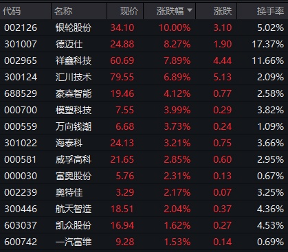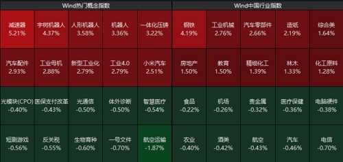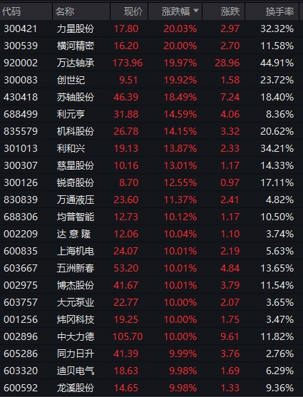 【导读】机器人板块再度爆发,汽车及汽车零部件板块走高2月26日,A股三大指数震荡上涨。截至午间收盘,沪指涨0.5%,深成指涨0.24%,创业板指涨0.26%。板块上来看,机器人概念股强势上涨,工业机械板块狂掀涨停潮,汽车及汽车零部件板块震荡拉升,房地产、教育、数字政府等概念异动拉升;而电信、白酒、航空等板块震荡调整。港股方面,三大指数悉数上涨。其中,恒生科技指数涨超3%,京东集团、美团、中芯国际等涨幅居前。宇树机器人概念股强势上涨,景兴纸业、浙江荣泰、中大力德等多股涨停。消息面上,2月25日,宇树科技发布一则视频。视频中,G1机器人完成了连续武打动作并保持平衡。开源证券指出,随着人形机器人走向量产,应用场景成为落地关键。我国凭借全球制造业领头羊地位以及庞大的人口基数,在应用场景上具有显著优势。在政策扶持和动员能力的优势下,我国人形机器人产业生态建设走在全球前列。我国拥有完整硬件产业链和量产能力优势,量产阶段有望领跑全球。此外,工业机械板块再掀涨停潮,力星股份、横河精密实现20CM涨停,万达轴承、创世纪、苏轴股份等大涨超15%。小米汽车概念股走高,银轮股份涨停,德迈仕、汇川技术、万向钱潮等跟涨。消息面上,2月26日,雷军在微博发文称:“小米SU7 Ultra的初衷,就是打造属于这个时代的新豪车。我们的目标就是,性能比肩保时捷、科技紧追特斯拉、豪华媲美BBA。小米SU7 Ultra产品力很强,我们团队信心十足,1万台的全年销量目标,已有九成把握。另外,小米SU7 Ultra和小米15 Ultra将于2月27日晚7点发布。”此外,汽车零部件板块爆发,山子高科、万里扬、浙江荣泰等多股涨停。民生证券表示,人形机器人核心零部件丝杠、电机、减速器、传感器、骨架等产品在车端广泛应用,人形机器人成为汽车零部件的“第二曲线”。短期,“第二曲线”或催化产业链估值的提升,长期人形机器人有望打开汽车零部件天花板。数字政府概念盘中拉升,科创信息直线拉升20CM涨停,榕基软件涨停,数字政通、开普云、博思软件等涨幅靠前。消息面上,各级地方政府接入DeepSeek提供政务服务成为热潮。深圳、广州、呼和浩特、赣州、无锡、临沂等地政府均宣布在政务系统中接入DeepSeek模型,将在内容生成和智能交互等方面显著提升政务办公效率。制作:小茉