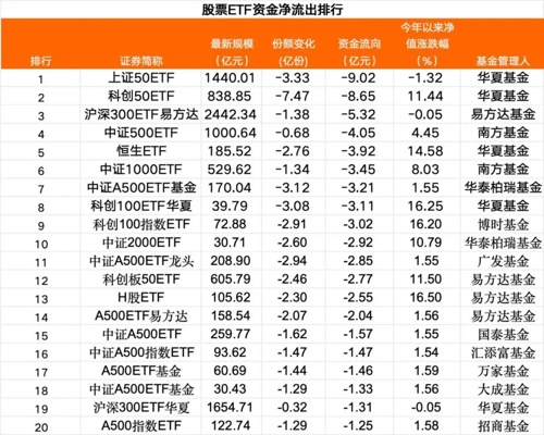 蛇年以来,市场整体震荡走强,港股市场持续强势,部分获利资金选择落袋为安。跟踪科创50、沪深300、创业板、中证500、中证A500等指数的宽基ETF,以及恒生互联网、芯片半导体等行业主题ETF成“失血”主阵营。