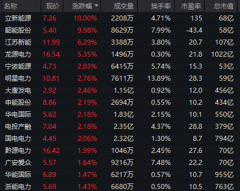 电力板块逆市拉升,立新能源、韶能股份直线拉涨停,龙源电力、江苏新能、明星电力等跟涨。