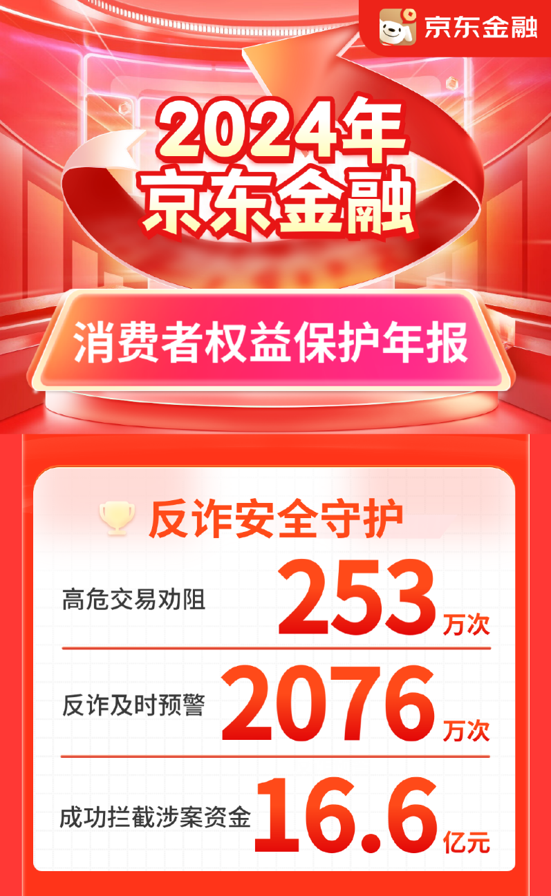 近日,京东金融发布《2024年度消费者权益保护报告》。报告显示,京东金融围绕反诈安全守护、线上线下全渠道的普惠金融教育、支付便利性升级改造等措,全方位守护消费者权益,并构建“科技防御、宣教预防、服务护航”的全链路保护机制,2024年全年累计守护消费者资金超16亿元,消保服务惠及超1亿人次。