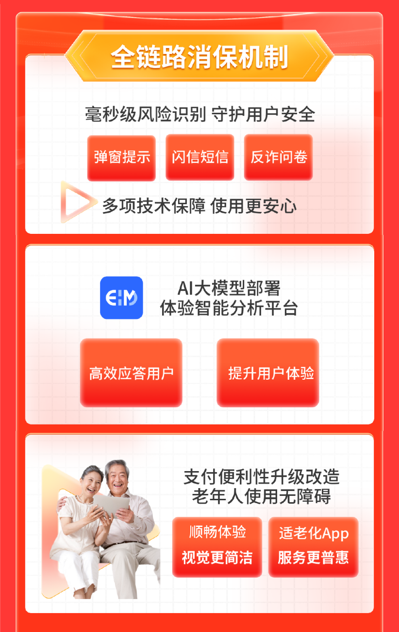 京东金融建立了完善的全链路消保机制,从风险识别到用户服务,全方位保障消费者权益。通过毫秒级风险识别技术,京东金融能够迅速察觉潜在的金融风险,并通过弹窗提示、闪信短信、反诈问卷等,及时向用户预警风险,做到早发现、早预防,全面守护用户安全。