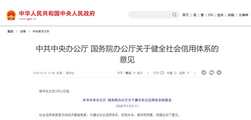 此外,《意见》要求夯实社会信用体系数据基础,包括建立全面完整准确的信用记录、强化信用信息归集共享等。